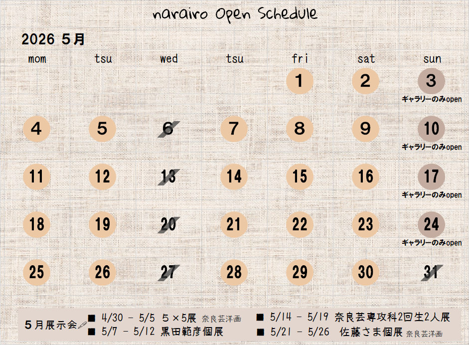 >4/30~5/5 『5×5展』(奈良芸 洋画)