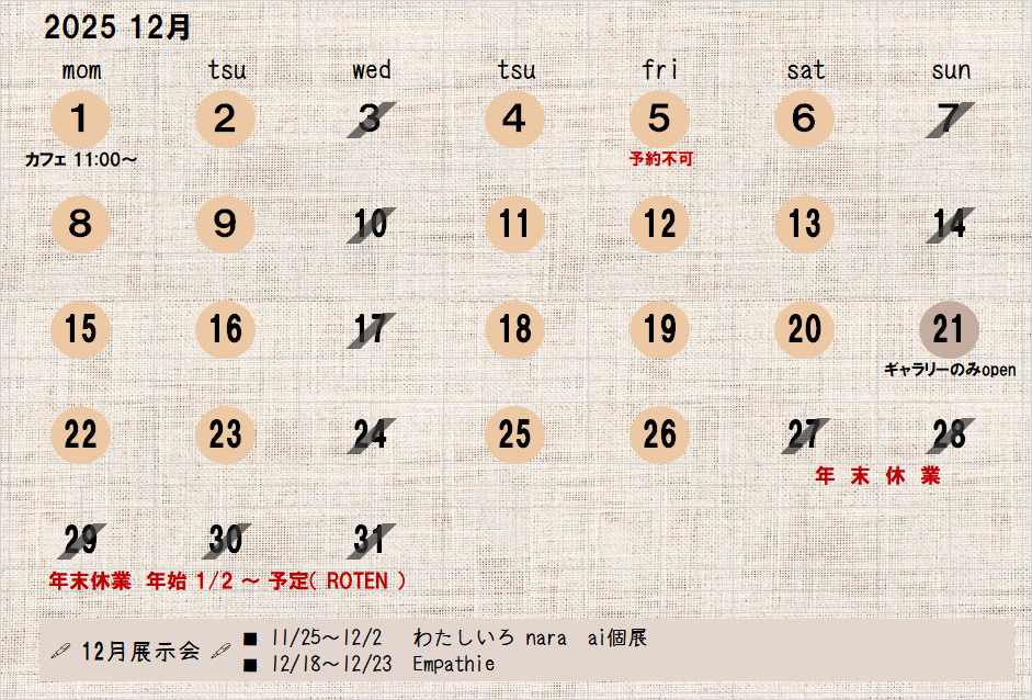 ■ 12/1(月) カフェ11:00~オープン予定