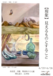 4/23(木)~4/28(火)の期間、奈良芸術短期大学 洋画コース専攻科1年の岡北遥人さん、山本和さんによる2人展が開催されます。