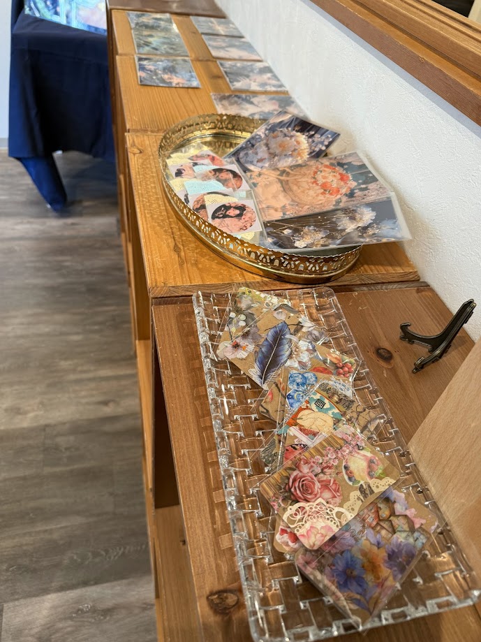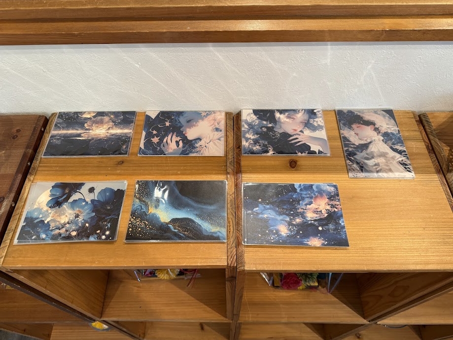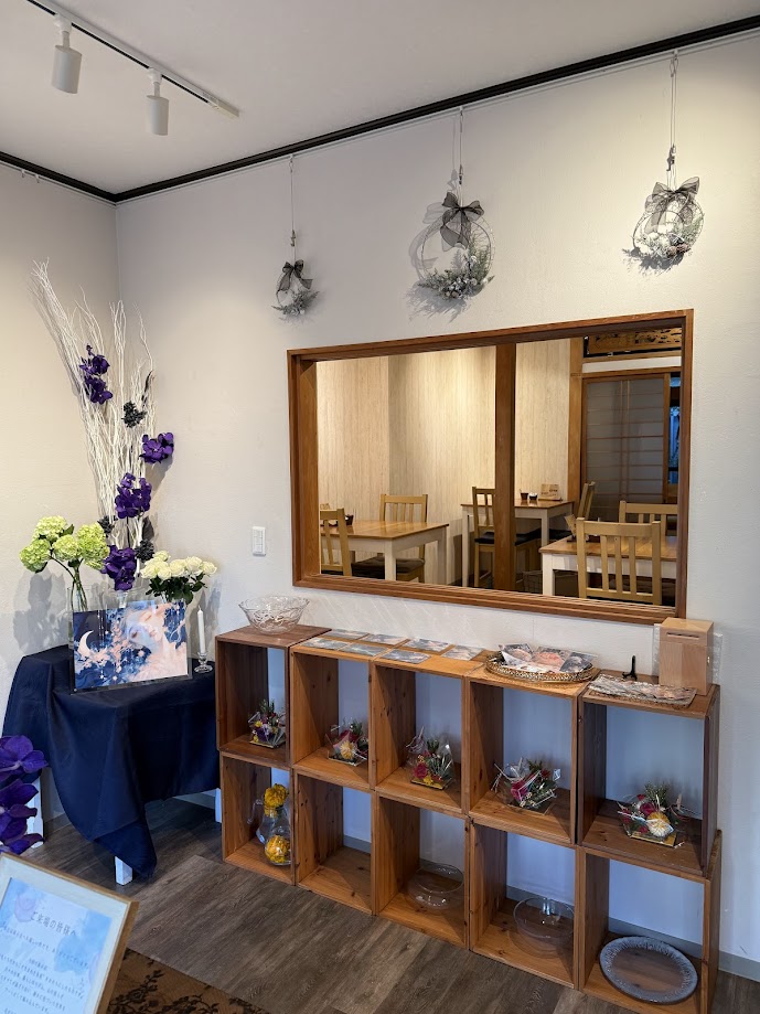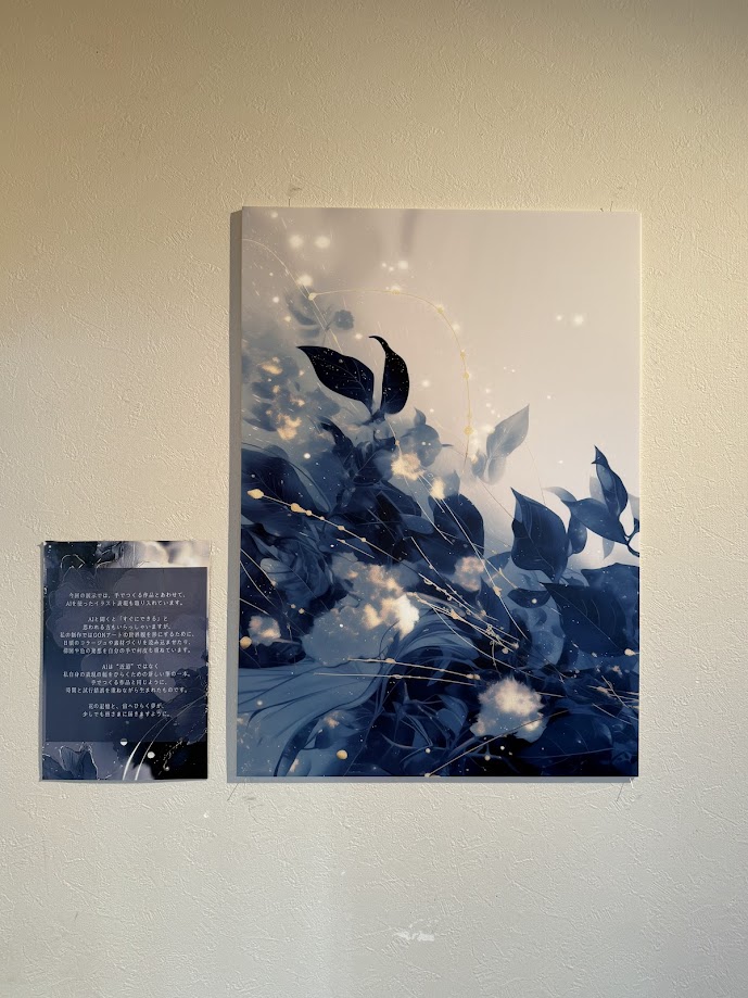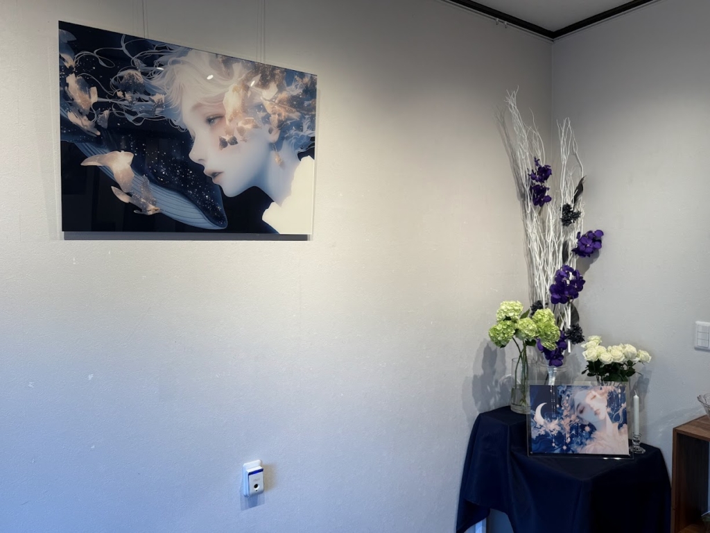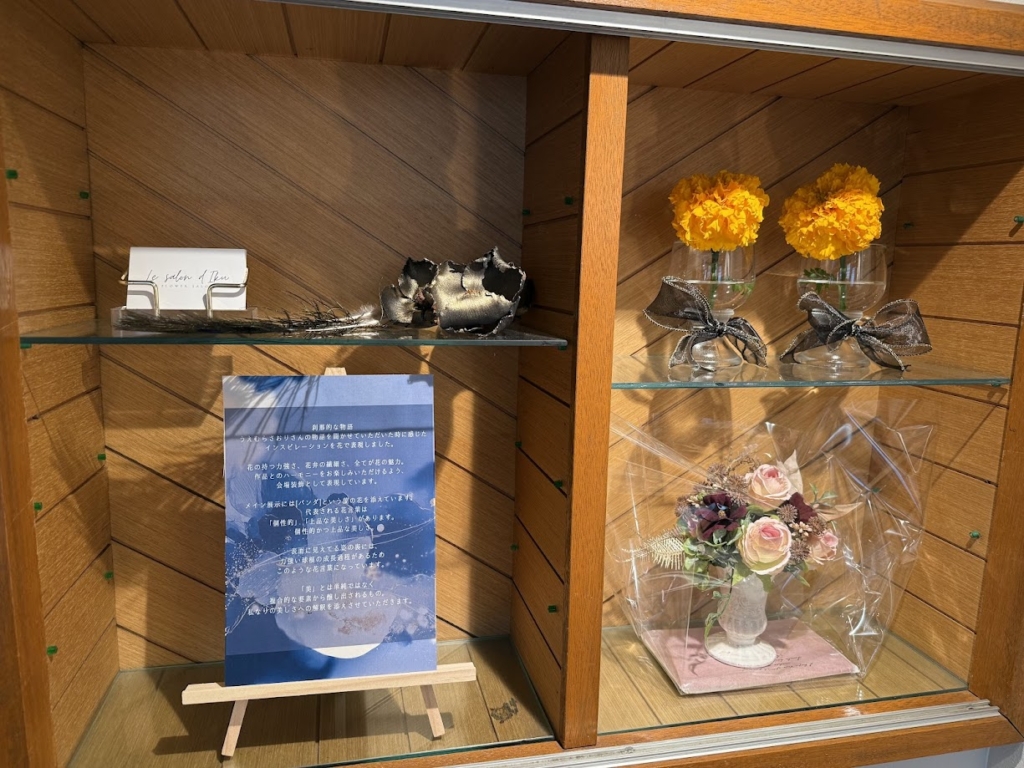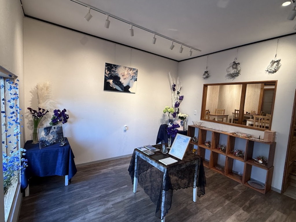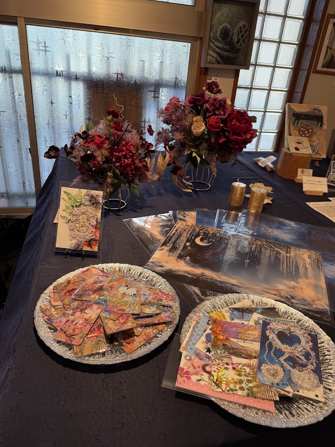 今回の展示は“今の私たちだからこそ生まれた表現” をかたちにしたものです。 日々の仕事、暮らしのリズム、心の揺らぎそのすべてが混ざり合い、静かに色づいた世界をアートとして編み込んでいます。花が記憶を宿すように、宙が夢をひそやかに照らすように、この空間が、あなたの中にもそっと物語を芽生えさせてくれたら幸いです。化とアートが重なりあう“今”の私たちの表現を、どうぞお楽しみください。